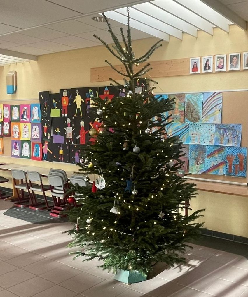Unser Schulflur ist mit einem wunderschönen Weihnachtsbaum dekoriert - an dieser Stelle geht ein herzliches Dankeschön an den Förderkreis, der uns den Baum auch in diesem Jahr gespendet hat.